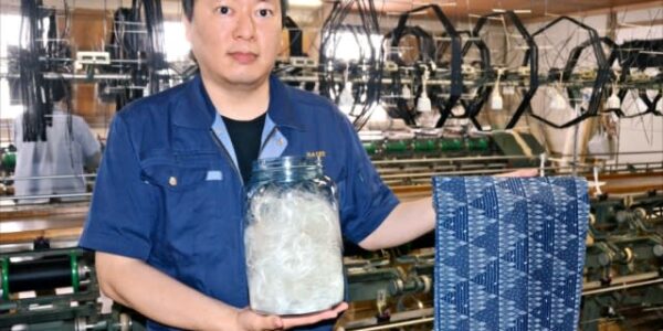 Published by 福島民報 福島県川俣町特産の絹織物「川俣シルク」の残糸…