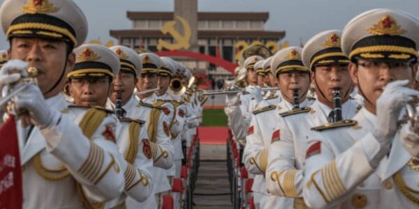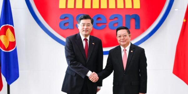 Published by 新華社通信 22日、握手を交わす秦剛氏(左)とカオ・キ…