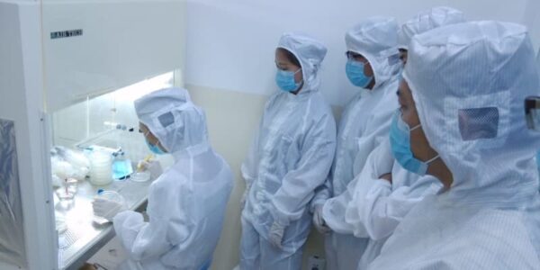 Published by 新華社通信 技術者に微細藻類の無菌操作での接種を指導す…