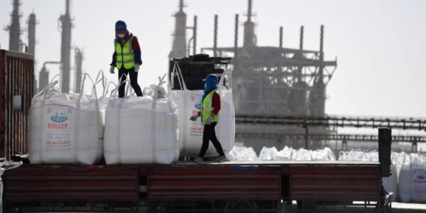 Published by 新華社通信 青海塩湖工業傘下の鉀肥分公司の貨物置場で、…