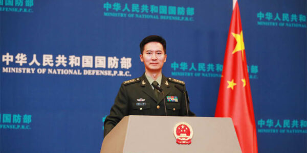 Published by 新華社通信 記者会見に臨む中国国防部の譚克非報道官。(…