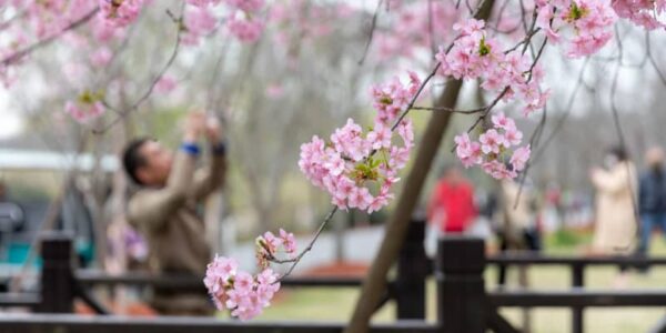 Published by 新華社通信 8日、上海市宝山区の顧村公園に咲く桜。(上…