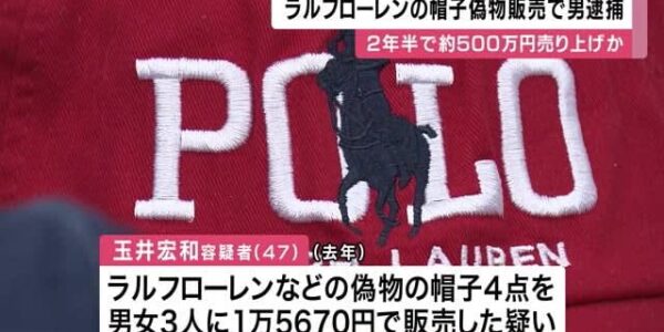 Published by 関西テレビ 偽ブランド品の帽子を販売した疑いで会社役員…