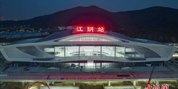 Published by Record China 滬寧沿江高速鉄道の江陰駅の夜…