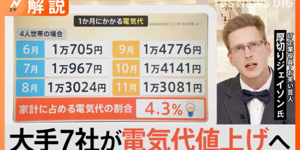 Published by TBS NEWS DIG 家庭で使用する電気料金が6月…