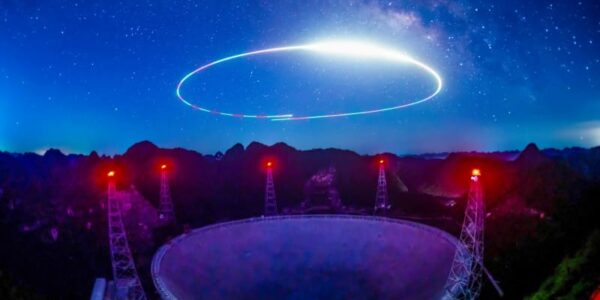 Published by 新華社通信 点検期間中の「中国天眼」。上空の円はドロー…