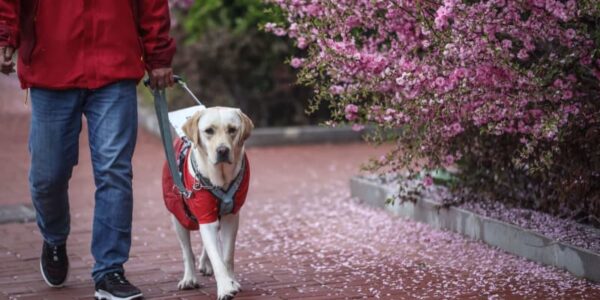 Published by 新華社通信 訓練中の盲導犬を伴い街を歩く中国盲導犬大連…