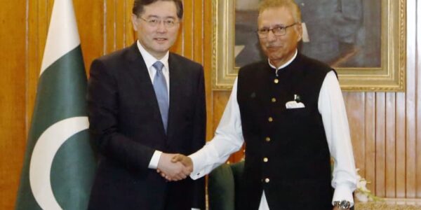 Published by 新華社通信 5日、アルビ大統領(右)と握手を交わす秦剛…
