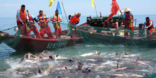 Published by 新華社通信 23日、ボステン湖で網で魚を取る漁民。(ウ…
