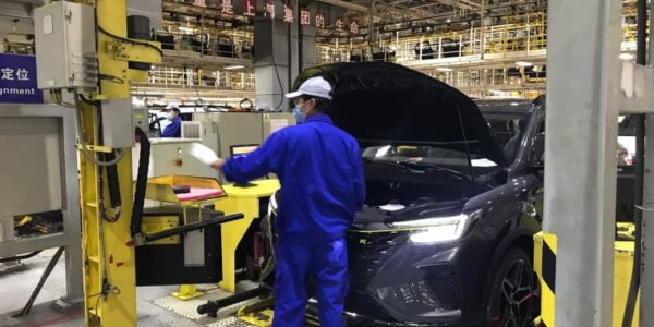 Published by 新華社通信 上海汽車集団の臨港乗用車工場で、車両を組み…