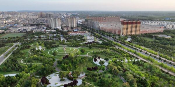 Published by 新華社通信 緑豊かな陝西省渭南市合陽県の市街地。(20…