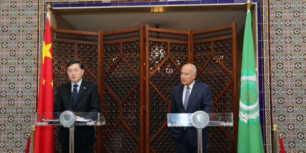 Published by 新華社通信 15日、共同記者会見に臨む秦剛氏(左)とア…