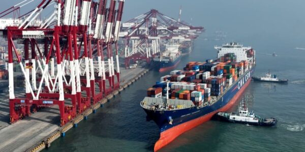 Published by 新華社通信 1日、青島港の前湾コンテナ埠頭に停泊する貨…