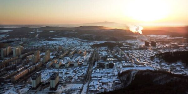 Published by 新華社通信 14日、朝日に照らされる黒竜江省撫遠市の市…