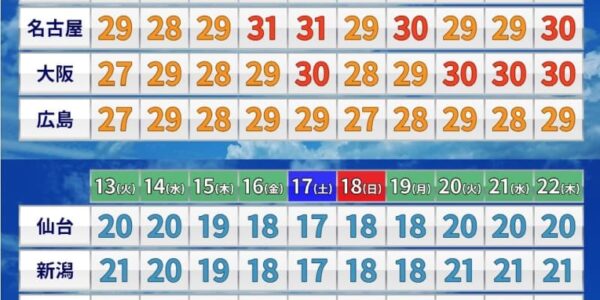 Published by ウェザーマップ 東北、東日本、近畿、中国の向こう2週間…