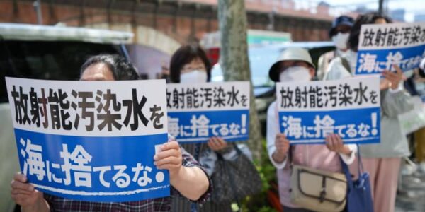Published by 新華社通信 東京電力本社前で、汚染水の海洋放出の中止を…